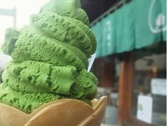 観光雑誌で見て、気になっていたお店の一つです。抹茶わらびもちが人気のようで、夕方だと売り切れでした。せっかく訪れたので抹茶ソフトを食べましたが、濃厚な抹茶でとてもおいしかったです。目当ての抹茶わらびもちは、翌日の開店直後に買い求めました。お土産として購入しましたが、賞味期限は3日程度だったと思います。