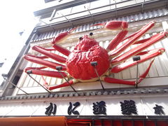 大阪旅行で道頓堀に行くと目に入るかに道楽の目立つ看板。思わず写真を撮りたくなる存在感でした。初めて見る子供たちも大きさと動いてるのに驚いてました。