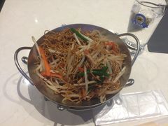 銀色の中華鍋に乗った極細の蒸し麺はXO醤でしっかりと味付けされたスナックのよう。