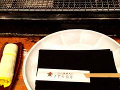 石っぽい造りの外観がなんともいえない雰囲気だしてます。七輪ではなく、テーブルと一緒になった焼き場でホタテ、蟹味噌、八角の開き、アスパラガスを焼いていただきました。焼くのは全て店員さんが目の前でやってくれるので楽々。
