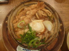 自分はえび天2尾が入った味噌煮込みうどんを頼みました。税込で1620円でした。ランチの時間ということでご飯も付いてきました。濃厚で熱々の八丁味噌の汁、こしがあるうどんがとてもおいしいです。さらにサービスで玉子は通常はそのまま生卵が入っていますが、卵も煮込んで固めにしてもらうこともできます。またご飯はお代わり自由でした。