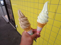 ソフトクリームが有名なお店で、地元で知らない人がいないくらい有名です。ここのモカソフトは、ミルクと上品なコーヒーの味がミックスされて美味しいです。少し、シャリシャリとした食感がいいです
