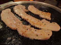 野菜で巻いて食べる豚バラ肉がメインなのですが、これに「チヂミ」「チャプチェ」「チゲ」などがついても、一人2千円くらい。これで、もう十分お腹いっぱいになります。