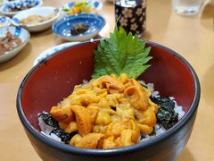 私は「生うに丼」(ごはん少なめ)、妻子は「北海丼」「漁り火丼」など。