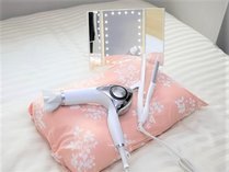 お部屋には女性に嬉しい“Refaのドライヤー・シャワーヘッド、ヘアアイロン、ライト付き三面鏡、レディース専用枕”などを揃えております!ご宿泊時にはリラックスして快適な時間をお過ごし頂ければ幸いでございます。