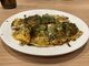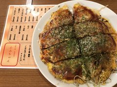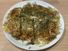 野菜に肉、玉子、イカ、ネギと具材のオールスターにそばを合わせた欲張りな内容のお好み焼き。皮は薄く野菜たっぷりで、食べやすいように予めカットされています。ソースがさっぱりしていてたいへん美味しく、キャベツの甘みも重なった優しい味。ペロリと食べられてしまう軽さもあるため、ついつい食べ過ぎてしまいますね。