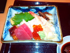 近江町市場を散策して、たまたま2階に入っているこちらのお店の前に行列を発見。「なんだろう?」と思ったら、年に一度の謝恩サービスランチを実施ということで、なんと海鮮ちらしが限定29食、500円! たまたまにしては、年に一度、しかも限定29食に間に合いそう、ということで列に並んでみました。10分ほどで開店とほぼ同時に限定29食は完売。なんともラッキーなランチとなったちらし寿司には、本マグロ、エビ、いくら、うなぎ、ホタテなどがキレイに並べられていました。味もさすが普段から人気のちゃんとしたお店だけに完璧。上等な品をお安くいただけで超ラッキーでした。