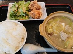 ランチで先輩と琴ケ梅に行きました。ちゃんこ以外にもメニュー豊富で悩みますが今日のちゃんこの味が濃厚味噌バターと聞いて即決。食べてみると癖は強くなくご飯が進む味でした。大きい唐揚げが2個付いてるのも何気に嬉しかったです。