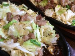 お腹ぺこぺこで行きました(^_^;) 熱々の鉄板の上でキャベツと豚肉のハーモニーでほんに旨いです。にんにくの香りでよけい食欲が増しますよ(o^^o) ガッツリごはんが食べたい時にはうってつけです(^∇^)