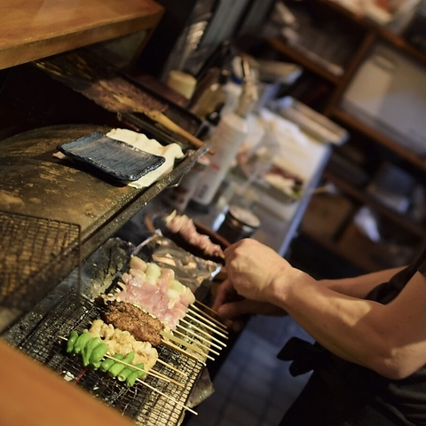香川名物骨付鳥と焼き鳥を炭火で焼き上げる