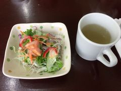 土日祝日でもリーズナブルなランチメニューがあります。メインの料理は撮り忘れてしまいましたが全ての料理にはスープサラダが付いてきます。