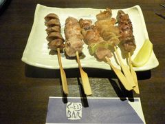 「つくば鶏の串焼き」「アピオスの炙り・梅塩で」などをいただきました。