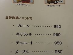 地下に降りていくと、シャンソンが流れ、アンティーク家具が目につきます。雑誌もたくさんおいてあり、ひとりの女性のお客様が多いです。おすすめは日替り珈琲!あとは、ランチタイムのチーズトーストとシナモン生クリームトースト、サラダ、ヨーグルト、珈琲セット900円。+100円で紅茶なども選べます。夕方6時くらいに閉まってしまいますから、時間に注意です。