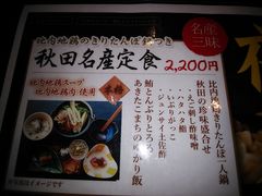 ホテルαー1宿泊の際に1階にある当店を利用。秋田名物が一通りお手頃価格で味わえる定食を注文。揚げ物が付いてなかったので山菜天ぷらを追加。地酒と共に堪能しました。