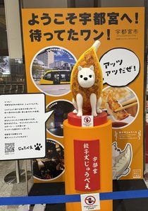 餃子犬じゅうべえが宇都宮駅で皆さまのお越しをお待ちしております。