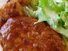 静岡駅南口から徒歩3分位にある、家庭的な雰囲気のレストランです。本格的な洋食メニューも沢山ありますが、この日はランチセットを食べに訪れました。ランチは、ハンバーグと魚のフライ(Aランチ700円)や豚肉野菜炒め(Bランチ700円)に、今週のランチ(800円)などがありリーズナブルです。Aランチを頂きましたが、白身魚も厚みがありハンバーグも美味しかったです。家族経営で皆さん楽器演奏が得意の様で、店内は楽器が飾られていました。