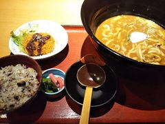 宝塚付近に遊びに行ってその帰りによりました。土曜日の17時過ぎなので少し空いてましたね。風呂に入る前にこちらに。おすすめのカレーうどん(辛口)を注文。ご飯とコロッケがついてます。前よりも大きなどんぶり出てきました。カレーはもっちりとしていてコロッケを投入して食べるとおいしいですね。