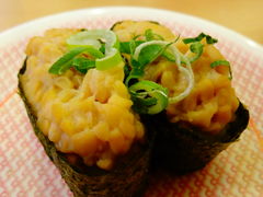 軍艦の『なっとう軍艦』や『ししゃもっこ』などの皿を取り、先に注文しておいた『茶碗蒸し』と共に食べました。