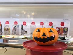 ハロウィン時期に行きました。ハロウィンメニューもありましたし、レーンではカボチャの飾りもまわってきました。