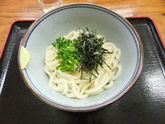 丸亀城へ行く前に腹ごしらえ。こちらではぶっかけを注文です。コシがある細めの麺、わさびが添えられていたのは珍しいかも。