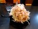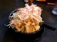 トッピングにメンマを追加した状態。メンマとかつお節しか見えない。(野菜増し・かつお節増量)