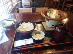豆腐ステーキの味の濃さと、お吸い物のさっぱりさが、たまりません。