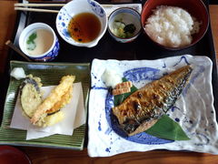 さばの塩焼きと天ぷらセット。
