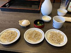 営業している出石そばの店が少なく、数少ない店の中から選んだ近又は入る時も出た時も店先に人が並んでいました。皿そば5皿(830円)を色んな薬味で食べれたのがよかったです。個人的には蕎麦の味がよくわかる塩が一番好みです。