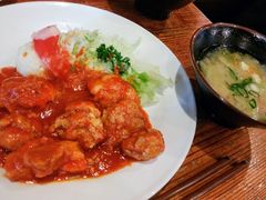 住宅街の中にぽつんとある一軒家風の洋食屋さん。少し場所が分かりづらかったです。休日のランチの終わり頃にお邪魔しましたが店内は家族連れやカップル、お仕事風の方などで混み合っていました。この日の日替わりメニューはチキンのトマトソース煮込み。ジューシーなチキンとたっぷり具の入った豚汁でお腹も心も満たされました。