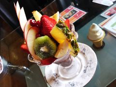 季節の果物の乗ったチョコレートパフェ。これを食べると幸せになっちゃう。近所なのでたまーに通ってます(*^^*)