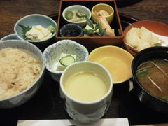 おかずは湯葉刺し・胡麻豆腐・天ぷらなどプチ贅沢な気分になれるものが多く素敵なランチでした。