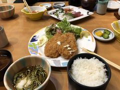 煮魚、焼き魚、カキフライ、釜飯、定食の小鉢どれも美味しかったです。席と席の間が広くないので、ゆったりと食事はできませんが、お客さんが多いので仕方ないですね。