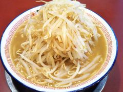 休日13時過ぎに入店、お待ち覚悟でしたが、すぐにテーブル着席できました。ラーメンやさい増しがほどなく着丼、もやし主体の茹でやさいが山盛り、その下にある太麺を掘り起こしながら、野菜・麺交互に食す。スープは太麺にちょうどよいやや濃いめ、別盛りにしてもらったニンニクを投入しつつ、もくもくといただく。ごろっとしたチャーシュー3個、食べごたえあり。満腹。