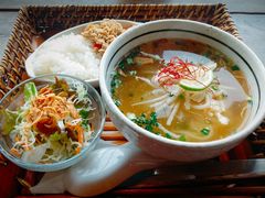 ずっとお昼時間に合わず寄れなかったので今回はお昼に合わせて来ました。アジアンオールドバザールには2ヶ所のレストランがありますが手前の方です。タイ、ベトナム料理が食べられます。ベトタイセットのガパオライスと鷄フォーをチョイス!辛くないので辛いのが苦手な方も大丈夫です。調味料を持って来てくれるので辛くも出来ます。途中でお酢を入れたり少しだけ辛いのを入れたりしてとても美味しかったです。セットはサラダも付いて辛いのが大丈夫な方はグリーンカレーやトムヤンクンフォーなども選べるのが良いです。プラス300円でタピオカジュースも飲めてお得です。そして、ずっと気になっていた激辛ナマステフォー!辛いだけじゃなく美味しい!だそうです。汗が止まらずお風呂上がりみたいになっていました。タオルを持参してチャレンジしてみて下さい。またランチに来たいと思います。