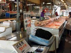 港の広い敷地にあります。めひかり・栗カニ・太刀魚の干物・タコ・海老など地の物を味見しながら手に入れました。料理方法を説明してくれ、丁寧に包装ごとに入っている物の品名と料理方法メモが貼ってありました。一度聞いただけでは覚えられないし、お土産に渡す際も助かりますね。おばちゃんたちの訛りも元気がありいいですね。