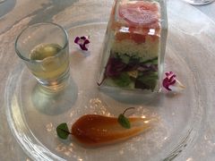 食欲も落ちる夏ですが、見た目にも美しく爽やかな盛り付けのサラダや、バーベキュー風の牛肉のグリエなど夏らしいお料理でペロリといただけました。訪れる度に異なるパンがいただけるので、毎回楽しみです。今回は酒麹のパンや竹墨のパンが気に入りました。焼きたてで出して下さり、おかわりも聞いて下さって嬉しかったです。ごちそうさまでした。