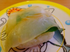 席へ案内されたあと、流れていた寿司を気の向くまま適当に取って食べました。