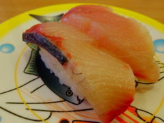 にぎりの『寒ぶり』や、軍艦の『山かけまぐろ』など、9皿くらい取って食べました。