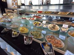 サラダビュッフェは新鮮で味付けもしっかりしていて前菜類も美味です。デザートは種類は少ないですがホテルメイドで美味しいです。ただ、デザートメニューは季節による変化はありません。フルーツロールとシフォンケーキ、ショートケーキのスポンジがとても美味しいです。アイスクリームは簡易カップに一つずつ入っていて取りやすく食べやすいです。ラムレーズンのアイスはめずらしくそして美味しいです。