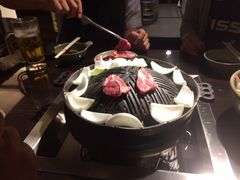 こんなビルの細い階段下にジンギスカン屋さんがあるのかしら?と不安げに階段を降りると、ちょっとビックリ!本当にジンギスカン屋さんなのかと疑ってしまうような、ミニマムで洒落た広い店内。でも確かにテーブルではジュージューとお肉を焼いています。