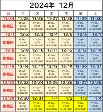 12月の営業時間はこちらの通りでございます。
