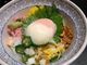 温泉卵、マグロ、納豆、トロロ、オクラ、大葉 が乗った丼で