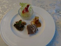 すごく美味しかったです。特に海老のカリカリした料理すごく美味しくて、あとで食べようとちょっと残しておいたら、無言で皿を下げられそうになって大慌てしました。私のナイフとフォークの置き方が悪かったんです。でも、「お下げして宜しいですか」って一言あっても良かったかなと思います。味は北京ダックもデザートも全部美味しかったです。