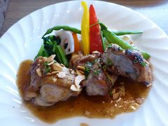 ランチで訪問。注文したのは若鶏のガーリックソテーとジューシー手ごねハンバーグ。若鶏は大振りでジューシー。塩加減も良く、ソースとにんにくの風味が相まって旨いです。ボリュームも十分。手ごねハンバーグにはデミグラスソースがたっぷり。深いコクがありながら、さらりとした味わいです。ハンバーグも肉汁たっぷりでおいしいです。温泉卵と合わせて食べるとまろやかで旨みが増しました。お店は街の洋食屋という佇まいですが、味はかなり上質でした。