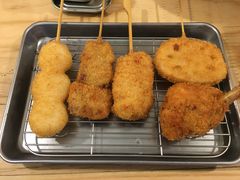 おもち、牛串、豚串、レンコン、鳥手羽先