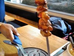 ビュッフェのメインとなるお肉は、シュラスコという剣に刺して焼いたブラジル料理のスタイルで供されます。お肉は日によって複数の熊本産ブランドの中から選ばれたものがメニューに載り、選んだ肉料理の価格=ビュッフェ料金というシンプルな設定。