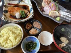 色々とあるメニューからこれを選びました、金目鯛と刺身が入っていてこの価格は安い位、出てくるのも早くて良いですね。ご飯は黄飯(きめし)で東伊豆地方の郷土料理です。地元で食べる金目鯛は美味しかったです