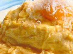 一般的にあるオムライスとの一番の違いは、そのとろとろ感以外に、チーズと黄身のトッピング、あとライスの味付けでようか?かなりインパクトのある見た目ですが、味はしっかり目の味付けで、スプーンで液体をすくうように超やわ食感♪