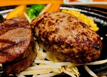 画像は黒毛和牛のヒレステーキとハンバーグです
