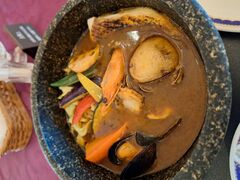私はゴルフはやりませんが、冬季休業期間中にレストランで提供しているスープカレーが美味しいとのネット情報を得て、行ってみました。フロントでレストラン利用したい旨を伝えると、レストランに案内して下さいました。きれいなレストランで、オフシーズンだから〜とドレスコードも何も考えないで、お邪魔してしまって、ちょっと後悔しましたが、後から来られた方々も普通の服装でしたので、心配は要りません。3種類のスープカレーの中から、シーフードを頂きました。海老、お魚、ムール貝の他に野菜も何種類も入っていて、凄く具沢山。魚介の出汁が効いたスープは、結構辛め。でも後を引かず、すっきりした辛さです。身体が暖まって汗が出るので、ハンカチ必須です。ほんのりバターが香るターメリックライスを浸して食べると、止まらない美味しさ!大変美味しく頂きました。冬季休業期間しか提供されないのが、もったいない!あまり宣伝もしていないのかな。 またこちらのフロント、レストランフロアともに若い女性が接客されていましたが、気さくに話しかけて下さり大変好印象でした。良いランチになり大満足です! ちなみにスープカレーの提供期間は、概ね12月末〜3月頭までの金土日祝日です。